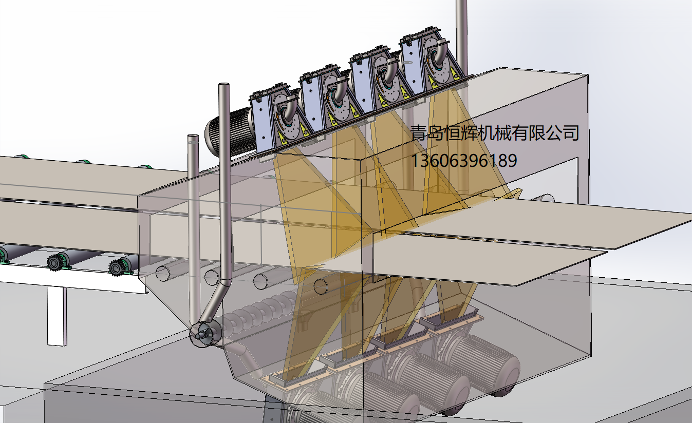 板链输送系统采用4道板链传动,解决了以前板链跑偏、故障率高的问题。